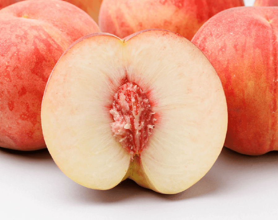 果重は300g~350gくらいで果肉は白色で肉質はしまり糖度が高く良食味の品種です。酸味は控えめではちみつのような甘さと桃らしい華やかな香りが特徴で、果肉は緻密なのでやや硬めに感じますが、果汁が豊富なので口当たりはなめらかです。