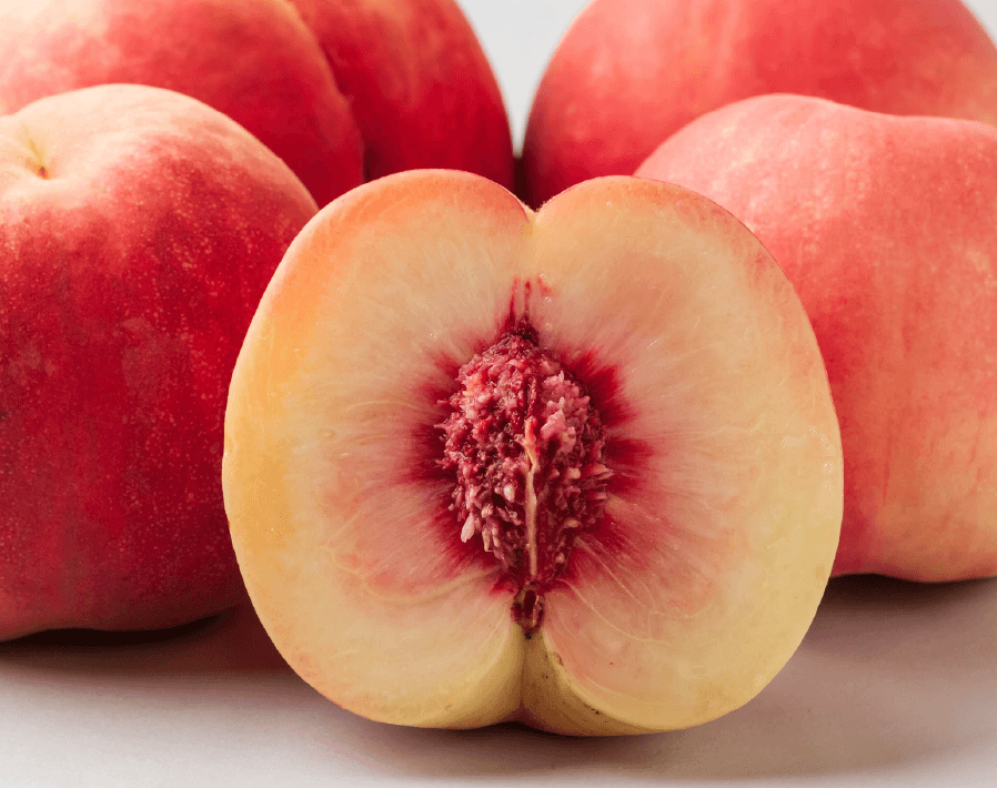 果重は300g前後くらいで、白い果肉は摘みたての頃のしっかりした歯応えから、熟成とともになめらかな口あたりへと移り変わります。桃本来の華やかで力強い香りが特徴で、食べた時に濃厚な香気が広がります。