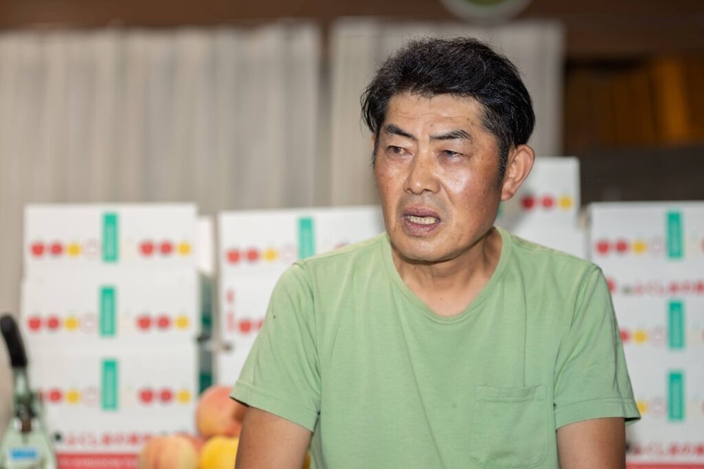 森さんは父から学ぶだけでなく、月舘の桃研究会に所属し、年に一度は山梨へ研修にも出向いていました。そこで出会ったのは、全国でも名高い山梨の桃作り。多くの技術を学ぶ中で、改めて気づいたのは福島の硬い桃ならではのおいしさでした。しっかりした食感の中に甘みがぎゅっと詰まり、食べごたえのある味わい。この発見が、森さんの桃作りに自信と誇りを与えてくれました。